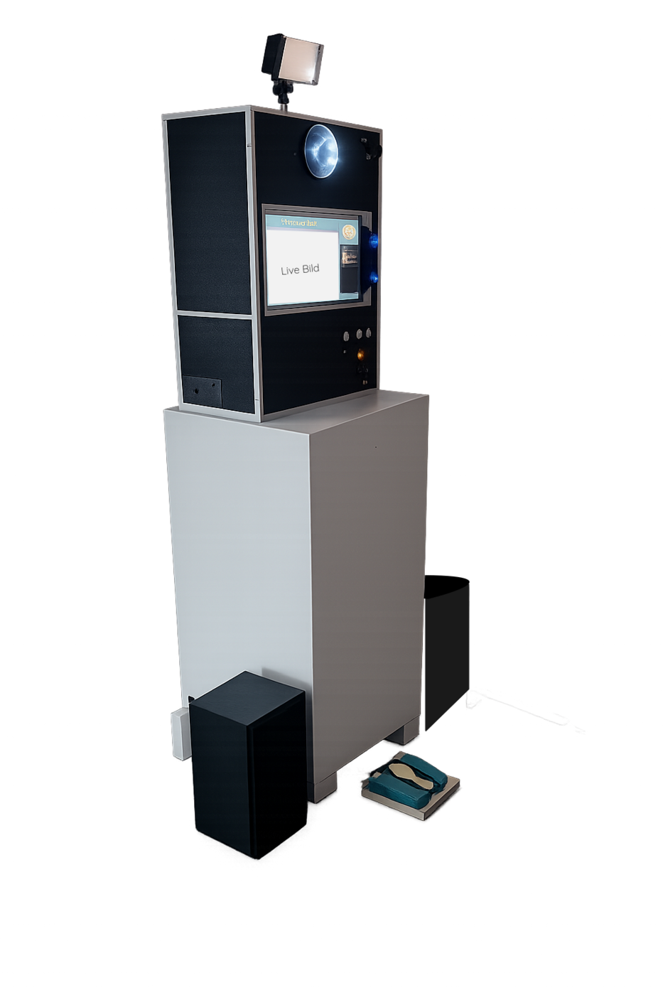 - Keine Internetverbindung während der Veranstaltung: Die Fotobox-Säule läuft offline, es findet kein Upload und keine Cloud-Verbindung während des Betriebs statt.